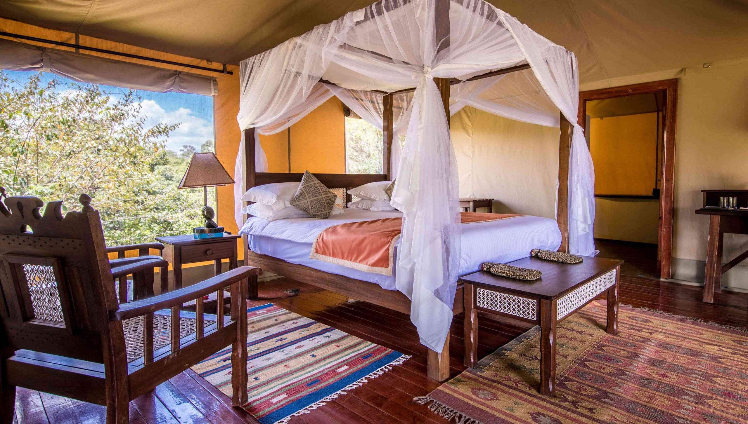 The Ashnil Mara Camp has 50 luxury tents and is located right in the Masai Mara National Reserve. With its location close to the Mara River – famous for the wildebeest migration – it is arguably in one of the best positions in the Masai Mara for game viewing. You can even watch the game from the comfort of your tent, beautifully decorated with lush beds, wooden floors and carpets, and a veranda with sunbeds. The restaurant serves good buffets featuring international, oriental, and traditional African cuisine, the open-air bar serves a wide selection of beers, cocktails and liquors, and the lounge is a good place to share your safari adventures. But of course, you can also just dive into the pool after an exciting day of game drives around the Mara River.