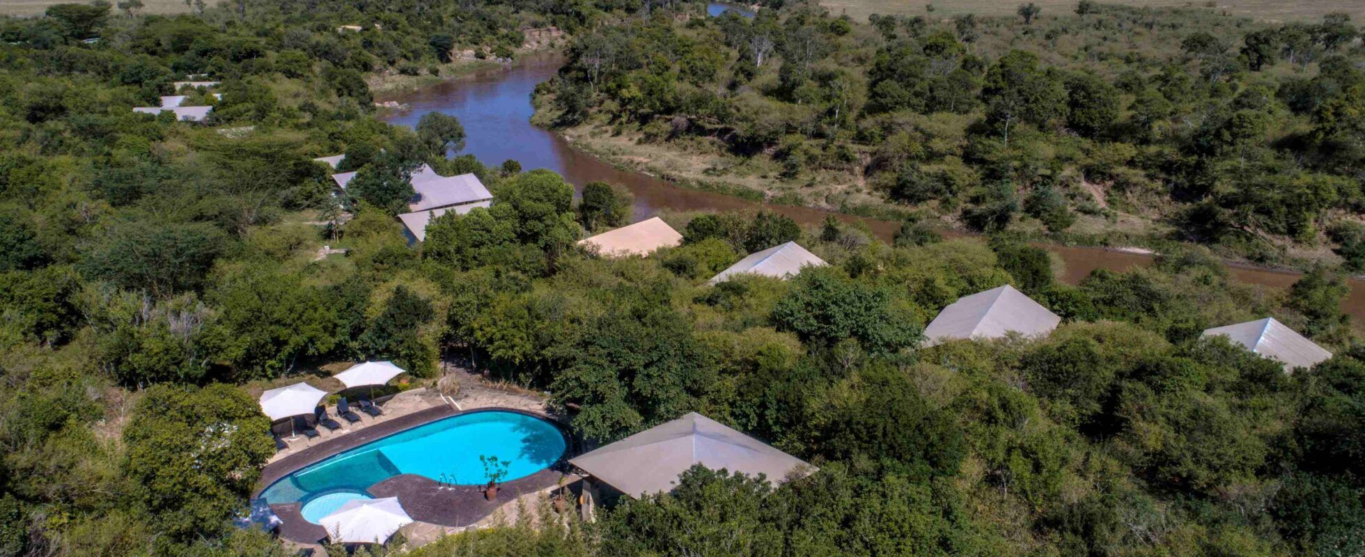 The Ashnil Mara Camp has 50 luxury tents and is located right in the Masai Mara National Reserve. With its location close to the Mara River – famous for the wildebeest migration – it is arguably in one of the best positions in the Masai Mara for game viewing. You can even watch the game from the comfort of your tent, beautifully decorated with lush beds, wooden floors and carpets, and a veranda with sunbeds. The restaurant serves good buffets featuring international, oriental, and traditional African cuisine, the open-air bar serves a wide selection of beers, cocktails and liquors, and the lounge is a good place to share your safari adventures. But of course, you can also just dive into the pool after an exciting day of game drives around the Mara River.