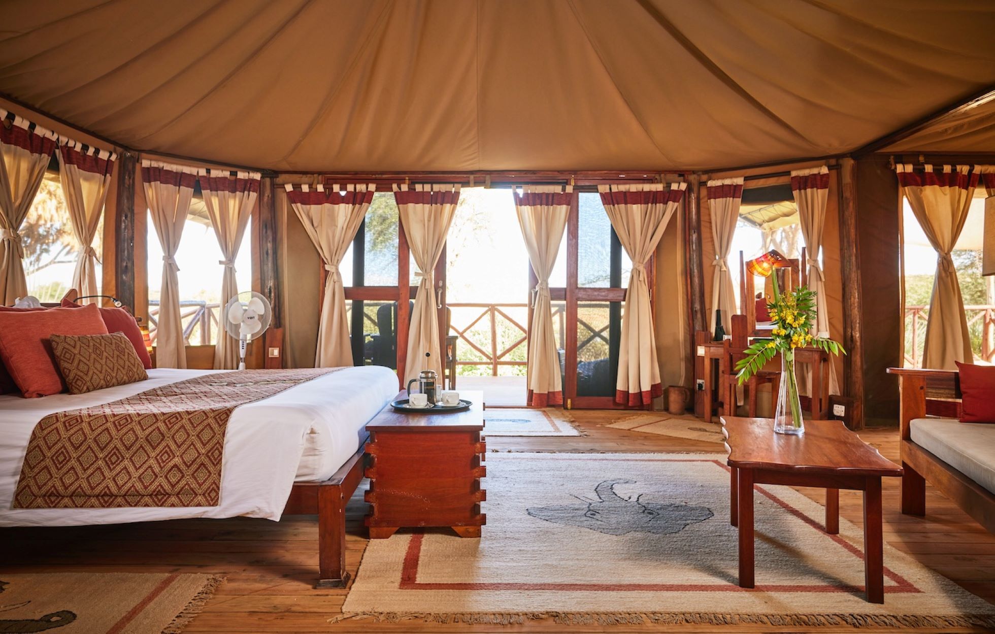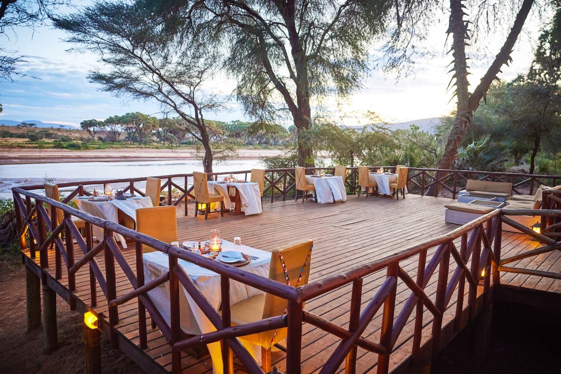 The Elephant Bedroom Camp comprises of 14 elegantly decorated luxurious tents in the heart of the Samburu National Reserve. Uniquely, each tent has a private plunge pool and hot and cold herbal showers. It’s like having your very own private spa…! Both breakfast and lunch are served al fresco on the banks of Ewaso Nyiro River under the shade of acacia trees, while dinners can be served in the dining area or the comfort of your own tent. In short, the Elephant Bedroom Camp offers elegant intimacy, among such amazing nature that you will not likely forget the experience.