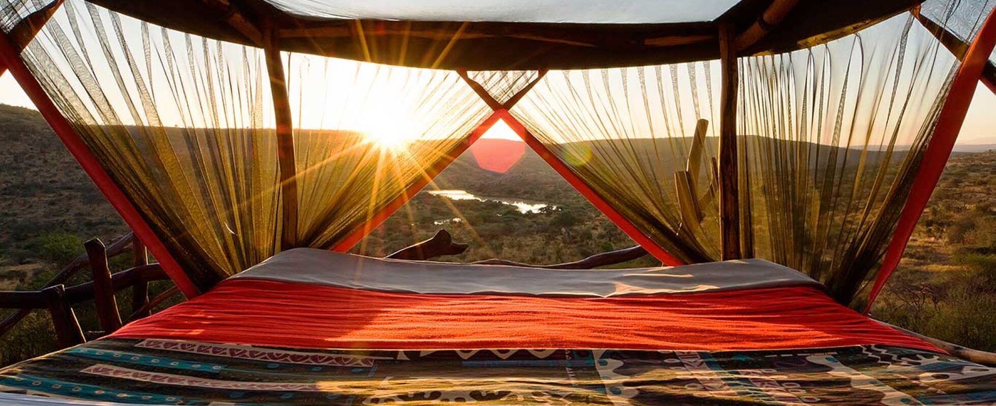 If you have always dreamed to spend the night outside, in the African wilderness, under a sky full of stars… then this is your chance. The Elewana Loisaba Star Beds offers just that, with their beds on wheels that roll out onto a terrace in the evening. Here you can sleep in sumptuous beds, protected by Maasai and Samburu warriors, while you enjoy the sounds and images of the African night all around you. Besides, this is also just a normal lodge with four rooms, a sitting/ dining area and lots of activities to be discovered (from horseback riding to mountain biking and fishing).