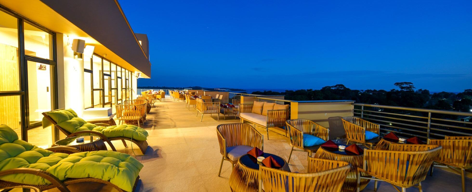 K Hotels is a modern luxury hotel in Entebbe offering stunning views of the great Lake Victoria and boasting 48 rooms spread over several floors. All rooms are spacious, ensuite with a walk-in shower and fitted with modern interiors, comfy beds, private balconies, and high-speed WiFi. Guests can mingle in the lounge, book some me-time in the spa or go to the restaurant for simple but delicious food. And the best of it all? The bar and swimming pool are on the 6th-floor rooftop, serving breathtaking views over the city and lake while you sip your cocktail or take a dive!