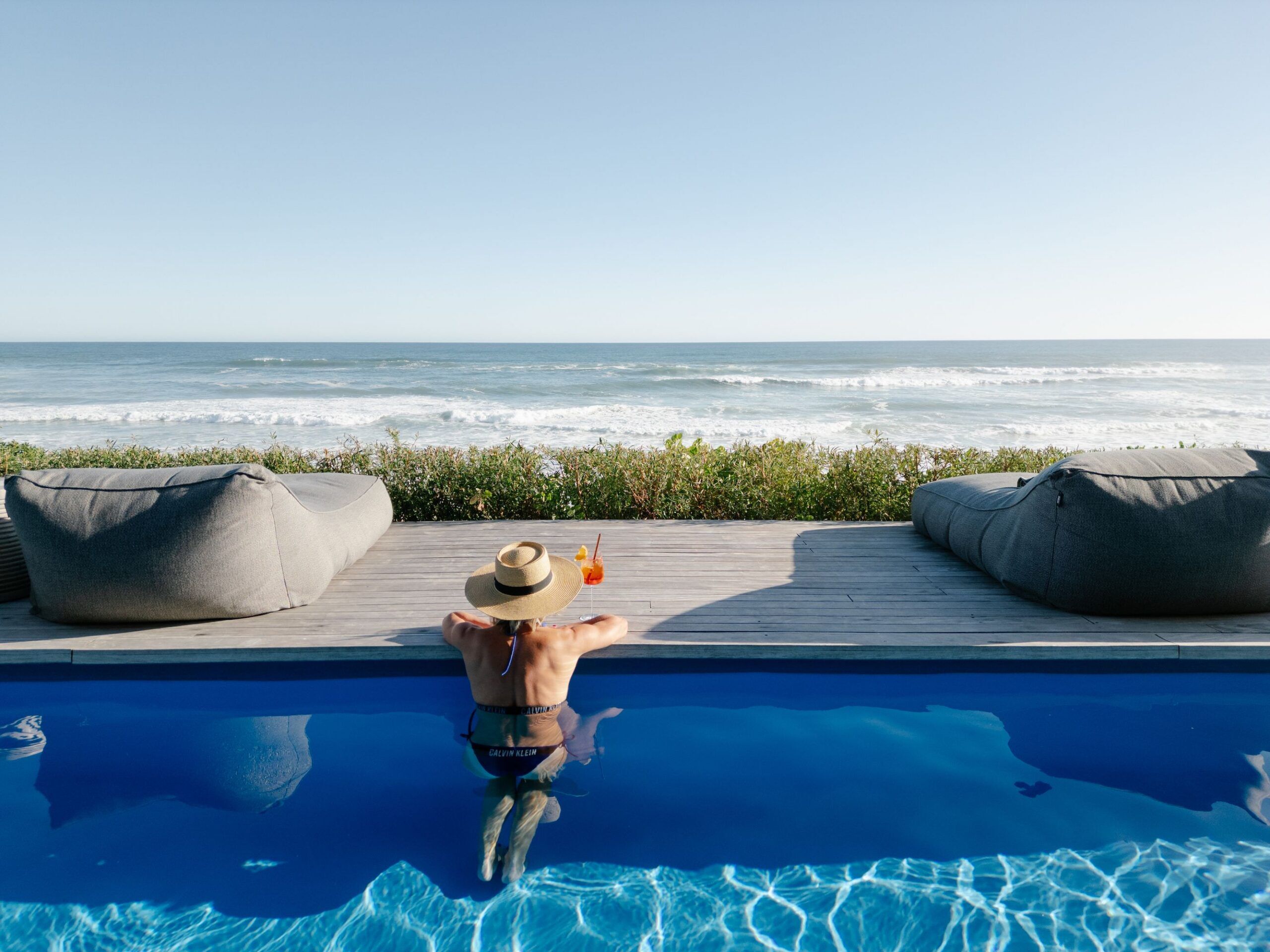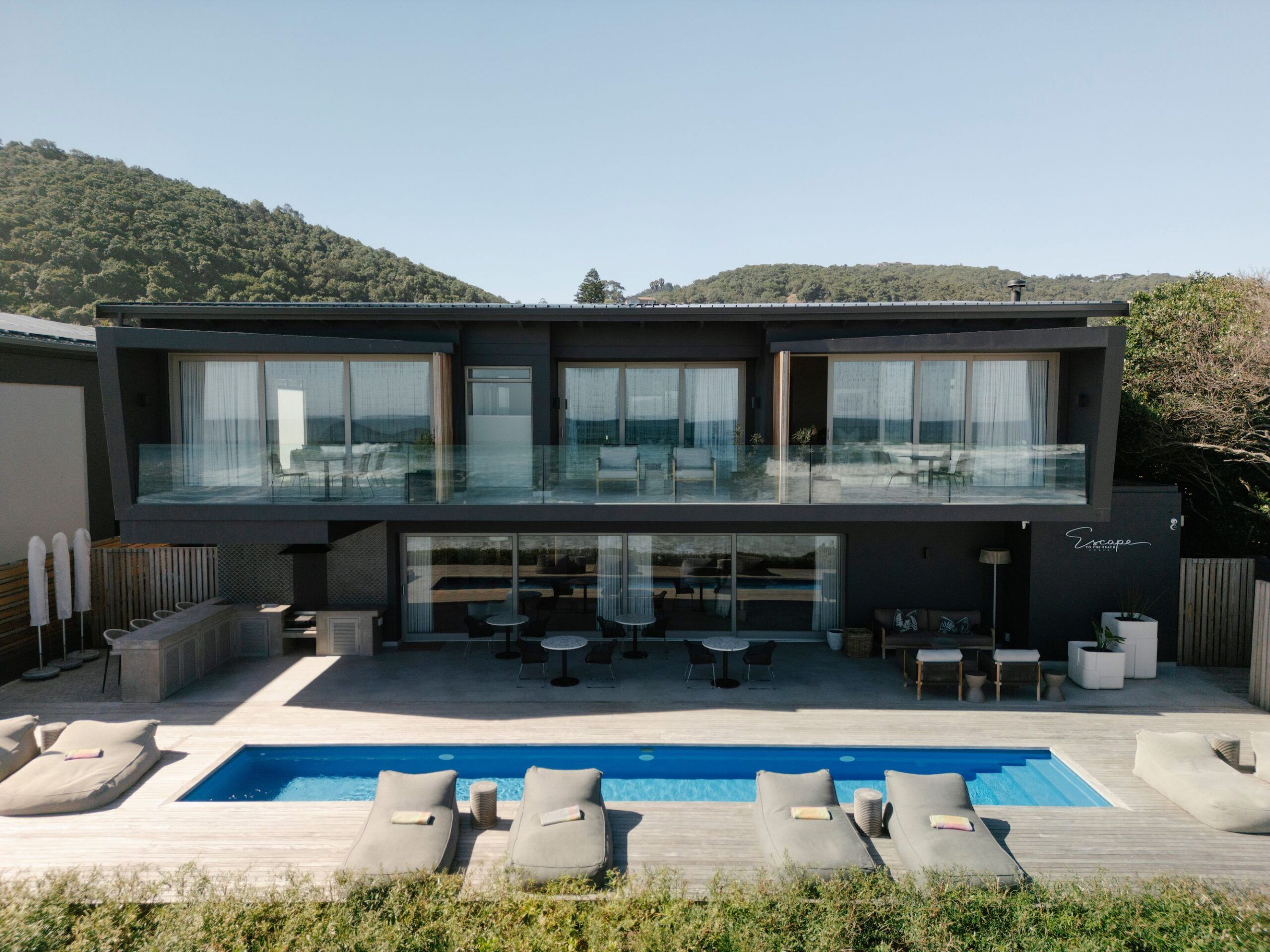 Escape to the Beach is a modern boutique hotel, located directly on the 28-kilometre-long Wilderness Beach with breathtaking views of the Indian Ocean. You might even spot dolphins surfing the turquoise waves! There are five air-conditioned suites, ensuite with double basins, a rain shower and/or a bath, extra-length king-size beds and modern amenities. The hotel living area merges into an extensive timber deck – the perfect spot to sip your sundowners and watch the sun sink in the Indian Ocean. Dive into the 12-meter lap swimming pool, relax on the sun loungers and use the private stairway leading down to the beach for your morning walk. A full breakfast is served on the pool deck to start your day.