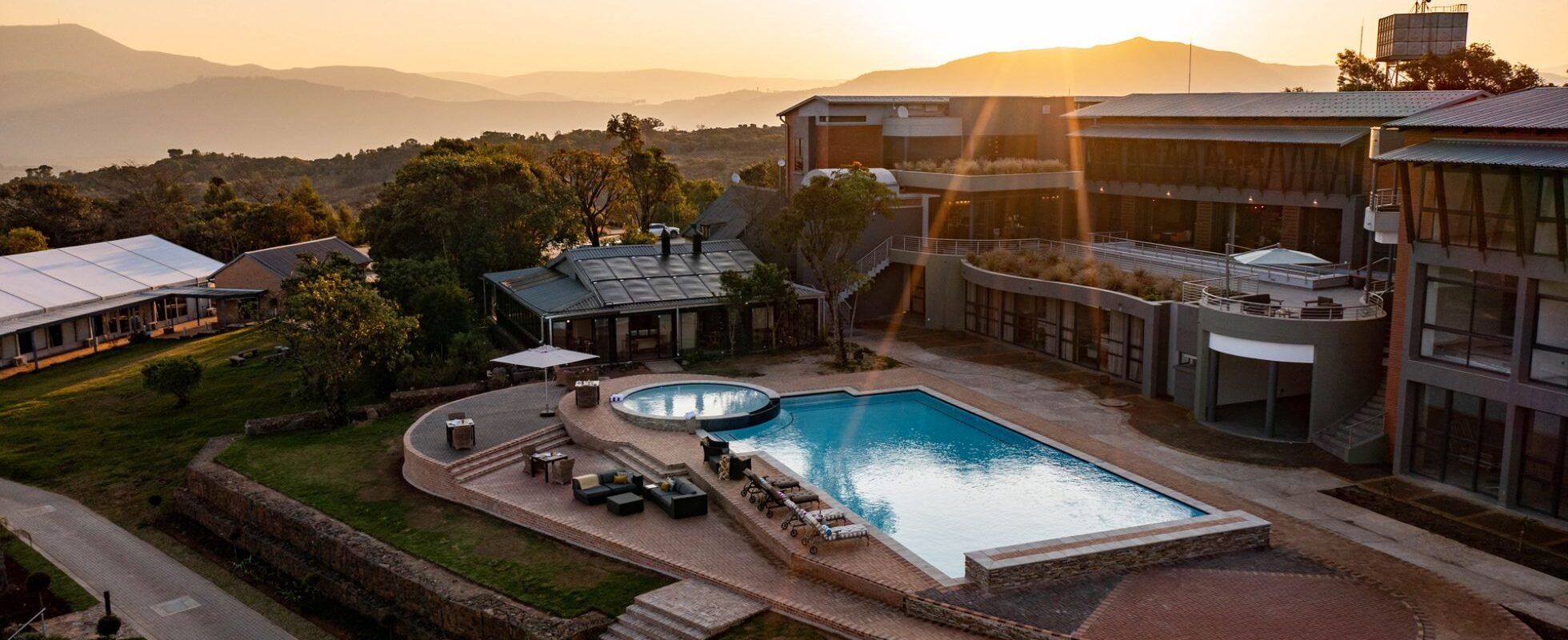 Hoyohoyo Angels View Graskop is an elegant designer hotel that straddles the Drakensberg escarpment on the doorstep of the Panorama route near “God’s Window” in Graskop, Mpumalanga. The one-hundred-hectare estate boasts spectacular landscaped gardens and offers luxury accommodation in different shapes and sizes (from 2 to 8 people), always fitted with spacious lounges and private terraces providing breathtaking views. The ensuite bathrooms feature luxurious free-standing baths and frameless rain showers. Other amenities include air conditioning, mini kitchens, satellite TV and WiFi. There is a swimming pool, a pool bar and a library lounge, and the hotel restaurant caters for every need – there’s even a private dining room available for up to 12 guests and a private landing strip (Graskop Airfield) for those arriving by air!
