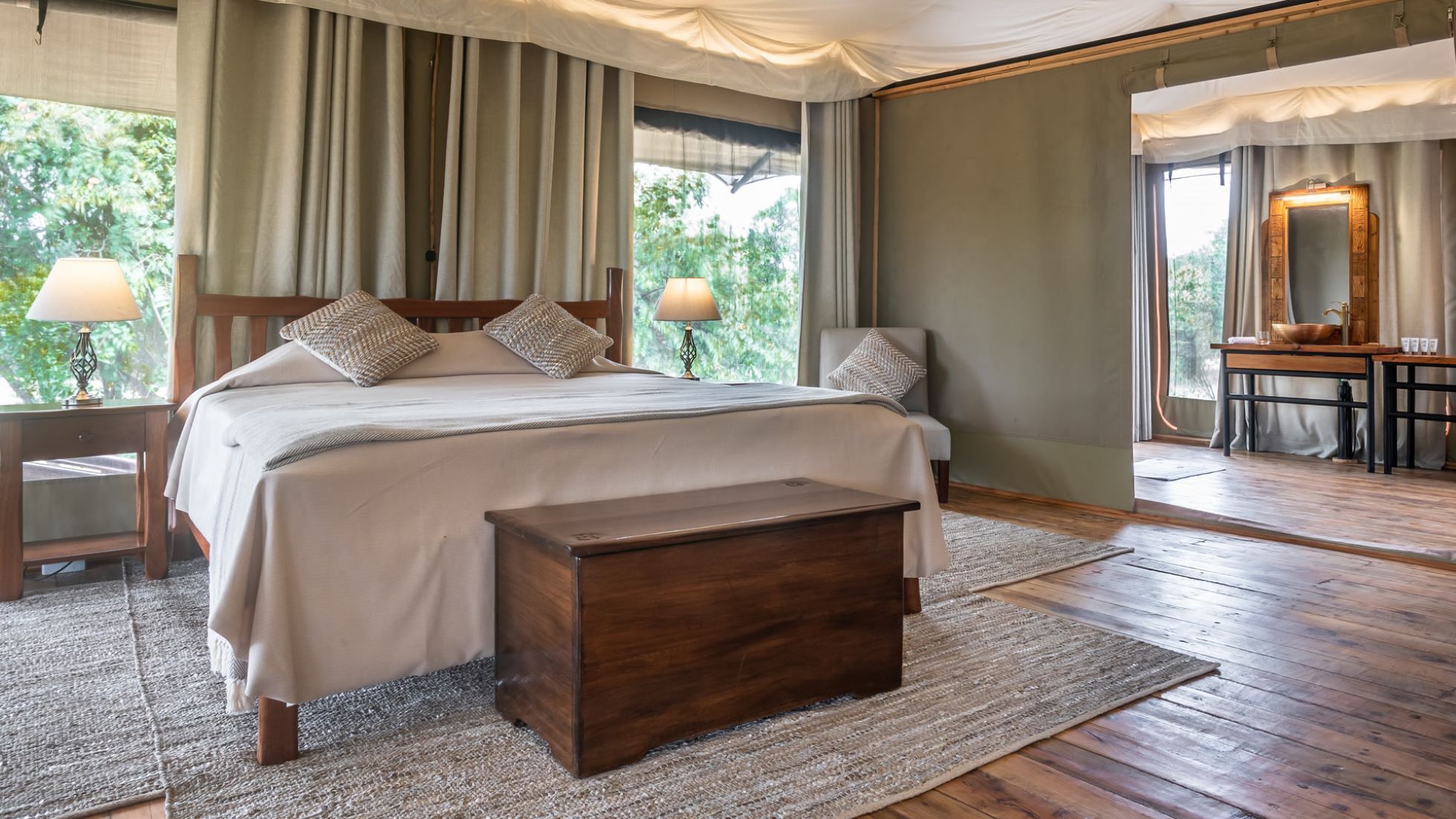 With luxury tents on elevated platforms near the Talek and Mara River, the Ilkeliani Mara Camp is the perfect spot to rest your head after a day of watching the wildebeest migration. The twelve spacious tents are decorated in a classic style with lush sofas and beds, carpets and pillows, all set in different colours wood and earth tone fabrics. Add a 180-degree view from the bathroom to the mix (with an indoor shower that opens into an outdoor shower!) and you know you are in a good place. The beautiful family tent boasts a spacious living area between two sleeping areas, so families can enjoy their time together or choose to have some privacy.