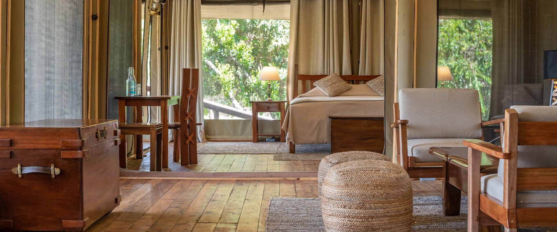 With luxury tents on elevated platforms near the Talek and Mara River, the Ilkeliani Mara Camp is the perfect spot to rest your head after a day of watching the wildebeest migration. The twelve spacious tents are decorated in a classic style with lush sofas and beds, carpets and pillows, all set in different colours wood and earth tone fabrics. Add a 180-degree view from the bathroom to the mix (with an indoor shower that opens into an outdoor shower!) and you know you are in a good place. The beautiful family tent boasts a spacious living area between two sleeping areas, so families can enjoy their time together or choose to have some privacy.