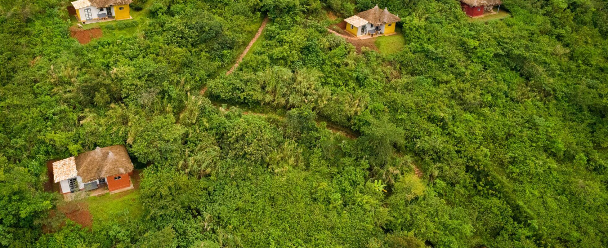 The Isunga Lodge, at the edge of the infamous Kibale National Park, is surrounded by no less than three national parks (the Rwenzori Peaks and Queen Elizabeth National Park are also in view) and offers 8 simple cabins (one for families) spread over a hillside. All cottages have charging facilities, mosquito nets, flush toilets, hot showers and a private terrace with breathtaking views of the Kibale Forest. The refreshing saltwater pool, a bar and a restaurant with a big love of fresh food (in set menus but with attention for dietary requests), and of course the proximity of chimpanzees complete the picture. WiFi is available in the public areas but might be a bit slow since the lodge is so remote. But then again, do you really need WiFi in paradise?