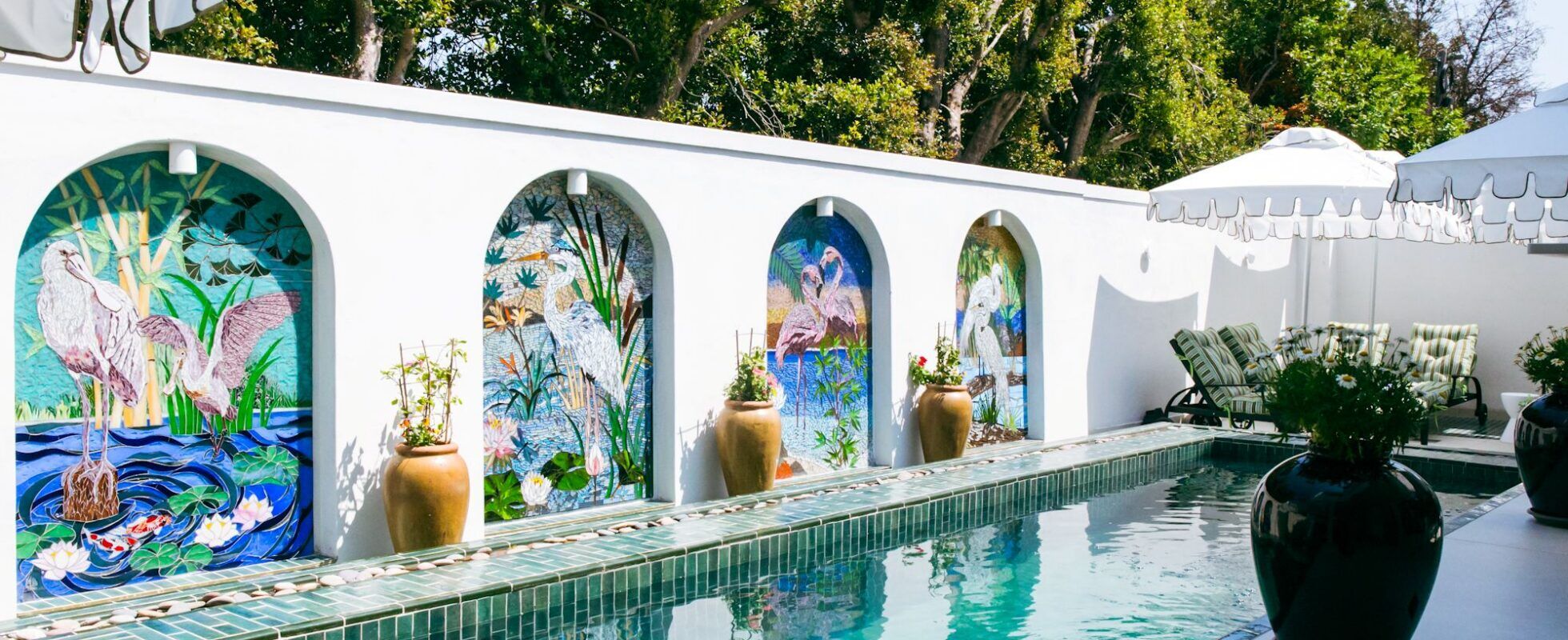 Le Petit Manoir is a luxury boutique hotel situated on the main street in the picturesque town of Franschhoek, offering 10 exclusive suites, each designed with a modern and sophisticated flair. They are all fitted with a king-size bed, espresso machine, minibar, air conditioning, fireplace, smart TV, high-speed WiFi and an ensuite bathroom with walk-in shower and freestanding bath, deluxe toiletries and heated towel rails. The suites on the first floor have a spacious balcony with fantastic views of the mountains, and some even have a hot tub. Enjoy the sun terrace, the bar and the heated outdoor swimming pool, and indulge in a sumptuous breakfast before you go out exploring the Cape Winelands!
