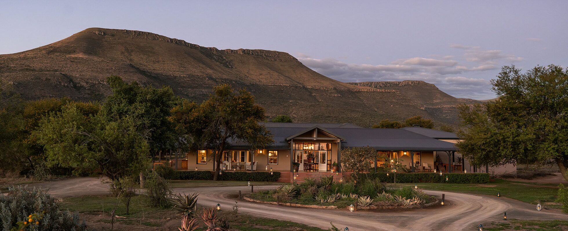Samara Karoo Lodge is located in the Samara Karoo Reserve, a 67,000-acre conservation project in the majestic Great Karoo, south of Graaff-Reinet, in the Eastern Cape province. It offers 10 suites (two of which with 2 ensuite bedrooms for families), combining traditional Karoo style with all modern luxuries. All suites are standalone cottages, spread out around the main farmhouse and fitted with four-poster beds, fireplaces, air conditioning and a luxury ensuite bathroom with a double sink, separate bath and shower plus an outdoor shower. A private terrace looks out over the dramatic mountain landscape. The farmhouse is your go-to with an inviting lounge, a dining room, a bar, a beautiful courtyard and a wraparound verandah leading to the indigenous garden and a refreshing swimming pool. All meals are a culinary farm-to-fork feast, served in the dining room or on various outdoor locations. And get ready for some wildlife spotting, as two daily game drives are included in your stay!