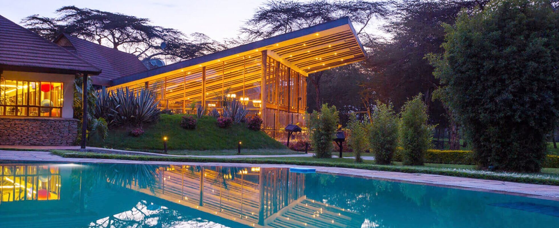 Sawela is one of the older lodges, that has been operating near Lake Naivasha for over twenty years now. With 42 rooms this is a relatively large lodge, but the tranquility of its location makes this a truly peaceful place. The modern buildings are spread over a large area and the lodge offers many activities on its grounds: from swimming and collective sports like football, volleyball and cycling, to boating, darts, nature walks and a children’s corner. The single, double and family rooms are well-equipped and located in different cottages spread over the property. In short, Sawela is a luxurious home away from home that can be just as lively as it is relaxing.