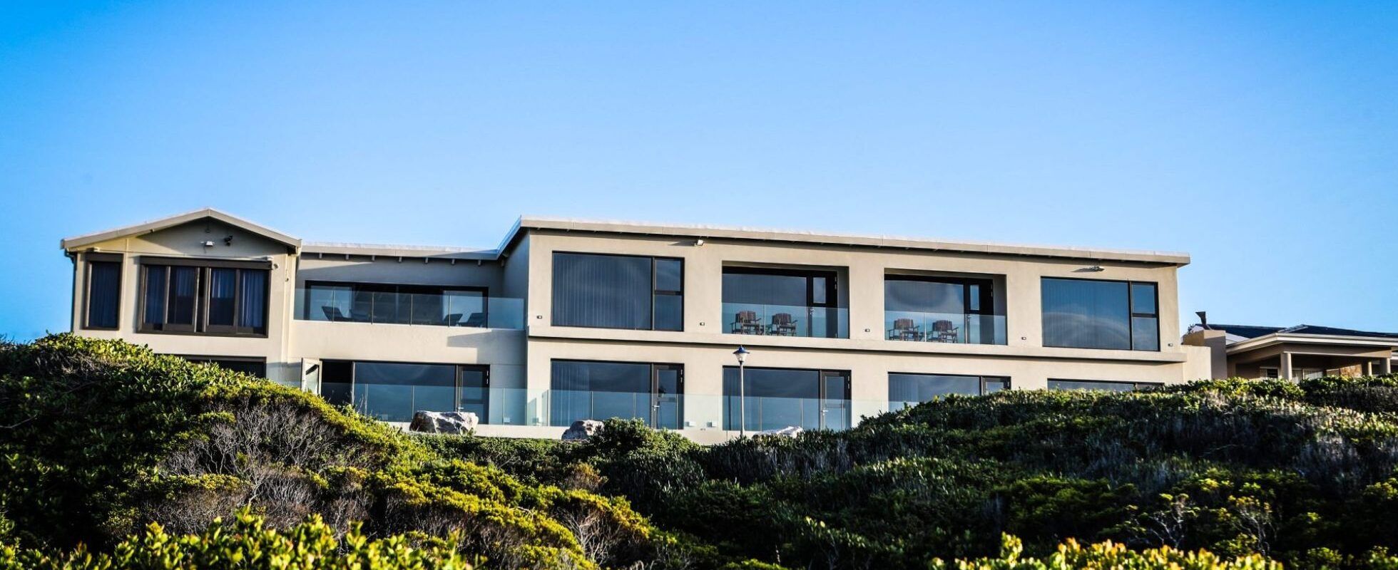 Schulphoek Seafront House is in Sandbaai, 5 kilometres from the centre of Hermanus, at just 50 metres from the ocean (meaning the waves are your background music!). It has 15 spacious rooms fitted with a walk-in shower, satellite TV, Wi-Fi, air conditioning, a well-stocked minibar, and a tea & coffee station. You can start your day with a breakfast menu made from fresh organic products, and for your evenings, the hotel has a seasonal fine dining restaurant (open only during high season). Enjoy a sundowner and relax on the lodge terrace whilst overlooking the bay – whale watching is possible from June to November!