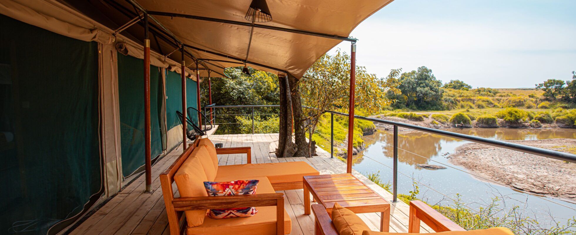 The Serenity Mara Legends Camp is a beautiful tented camp hidden in a forest beside the Olarro Orok River, in the heart of the Masai Mara National Reserve. The 14 thoughtfully designed tents mix modern amenities with an authentic African bush style. The rooms are spacious and neatly furnished with rustic wooden furniture and earthy-coloured fabrics, and the private bathrooms provide hot water showers. After a tasty dinner and a chat around the campfire, enjoy a good night’s sleep and wake up to the sounds of wilderness in a comfortable bed. Get some energy with a healthy breakfast while watching hippos bathe in the river nearby, then head off for an exciting game drive. A lovely place for a break between your safaris!