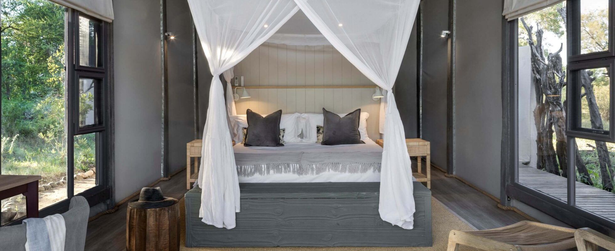 Hilltop Camp is atop a scenic elevation in the northern Hluhluwe sector of Hluhluwe iMfolozi Game Reserve. As the only camp in the park boasting a restaurant, Hilltop offers 70 accommodation units across five different types – from the spacious 8-sleeper Mtwazi Lodge to the charming 2-sleeper Rondavels. The interiors are cosy with wood furnishings, large windows that invite natural light, and ceiling fans or air-conditioning for comfort. Outside, you can relax on a private patio with a picnic table and braai (barbecue) area, ideal for soaking in the bushveld atmosphere. There’s also a swimming pool, a restaurant, a bar, laundry facilities, and even self-guided walking trails.