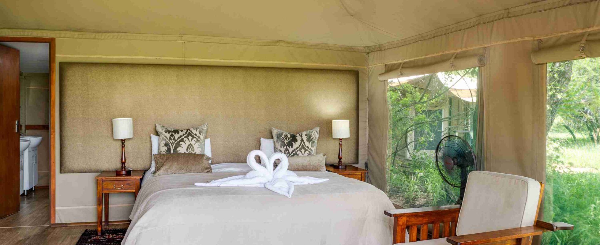 Tangala Safari Camp offers a raw, off-the-grid safari experience in the heart of Thornybush Big 5 Game Reserve, where nature roams freely. Don’t be surprised if an elephant strolls past the waterhole while you’re sipping your morning coffee! Completely solar-powered, the camp blends eco-conscious living with bush comfort, featuring accommodations with en-suite showers, double basins, private patios, mosquito nets, and fans to keep things breezy. The open-air dining area sets the scene for hearty bush breakfasts, laid-back lunches, and starlit dinners that feel straight out of a safari dream.