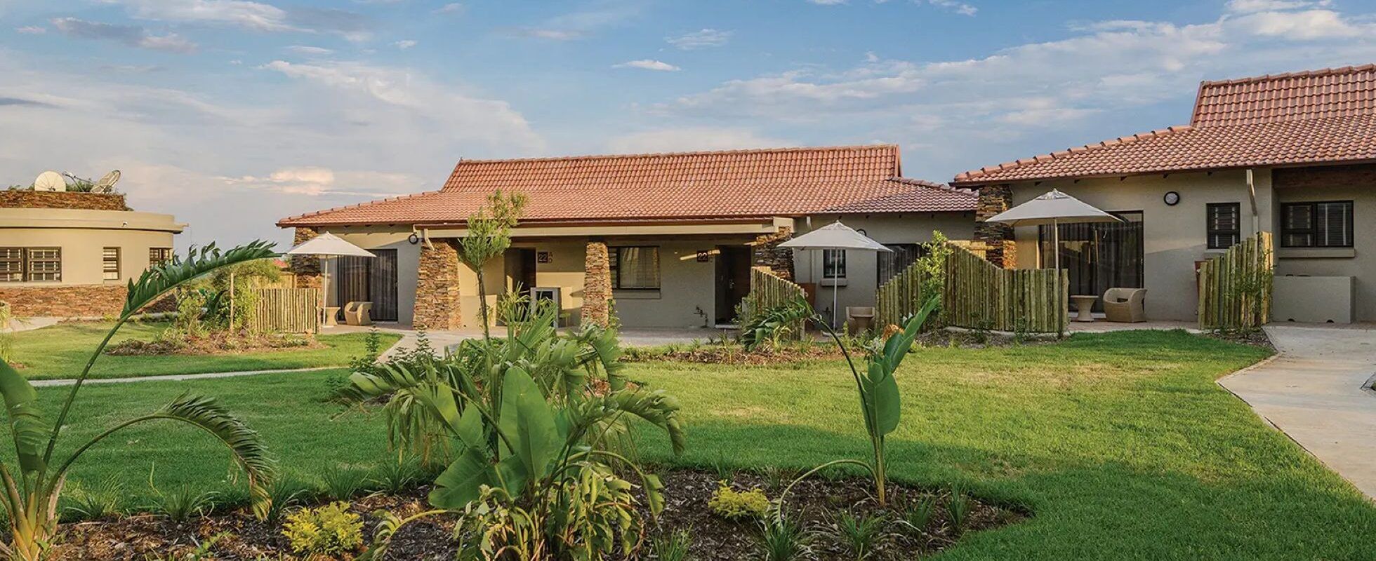 Ideally located for wildlife excursions, the Kingdom Resort is a few moments from the gates of Pilanesberg National Park. Stays range from compact studios to spacious four-bedroom villas (with private pools!), designed for flexibility and comfort. All rooms include air-conditioning, en suite bathrooms, and essentials like mini-fridges and tea-and-coffee stations. You can dine at the laid-back Acacia Terrace Café or cool off in the large central swimming pool. And for families, there is a water park and playground on site.