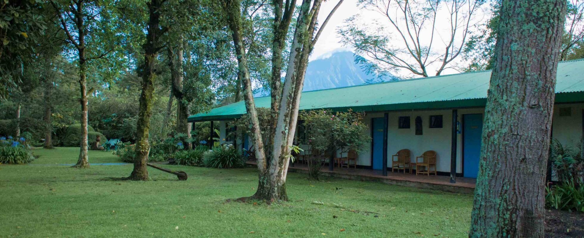 Travellers Rest Hotel is one of Uganda’s oldest lodges, situated just outside Kisoro with fantastic views of the Virunga volcanoes. There are several impressive guests on the hotel’s historical guest list – the famous Dian Fossey is even said to have called this place her second home! Located so close to Mgahinga Gorilla National Park, the hotel has a history in gorilla conservation, and after it was built in 1955 it quickly became a meeting place for gorilla lovers. The hotel offers 12 cosy ensuite rooms, all uniquely decorated with Congolese art and fitted with modern amenities. The restaurant serves a delicious four course set menu with lots of produce from this fertile region in a dining room full of art, and the bar in the tranquil garden is the perfect place for sundowners.