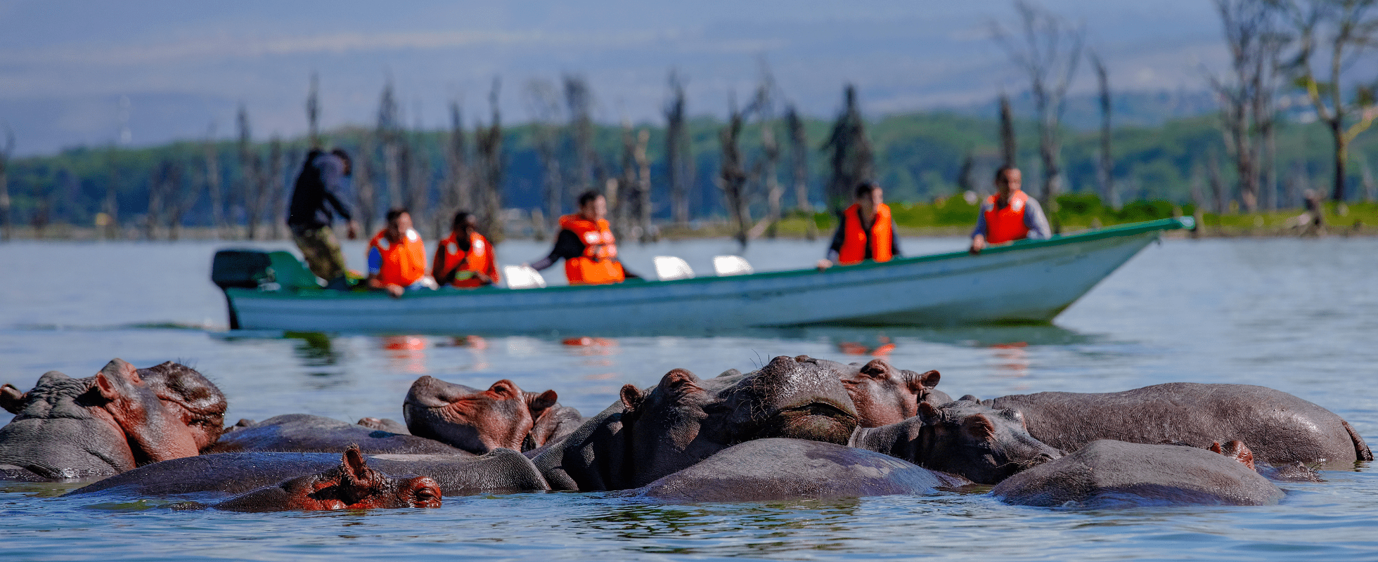 Take a boat trip on Lake Naivasha followed by a walking safari on Crescent Island. Surrounded by water, the peninsula is currently only accessible by boat from the east or west side. The shores are home to abundant birdlife, including pelicans, cormorants and ospreys with their haunting calls. There are more animals per hectare here than in any other Kenyan park. This peninsula is also known as Kenya’s best kept secret. Here you can get up close to wildebeest, waterbucks, hippos, jackals, zebras, and gazelles, among others, and spot over 400 different species of birds such as ospreys and herons. Be sure to bring your binoculars!