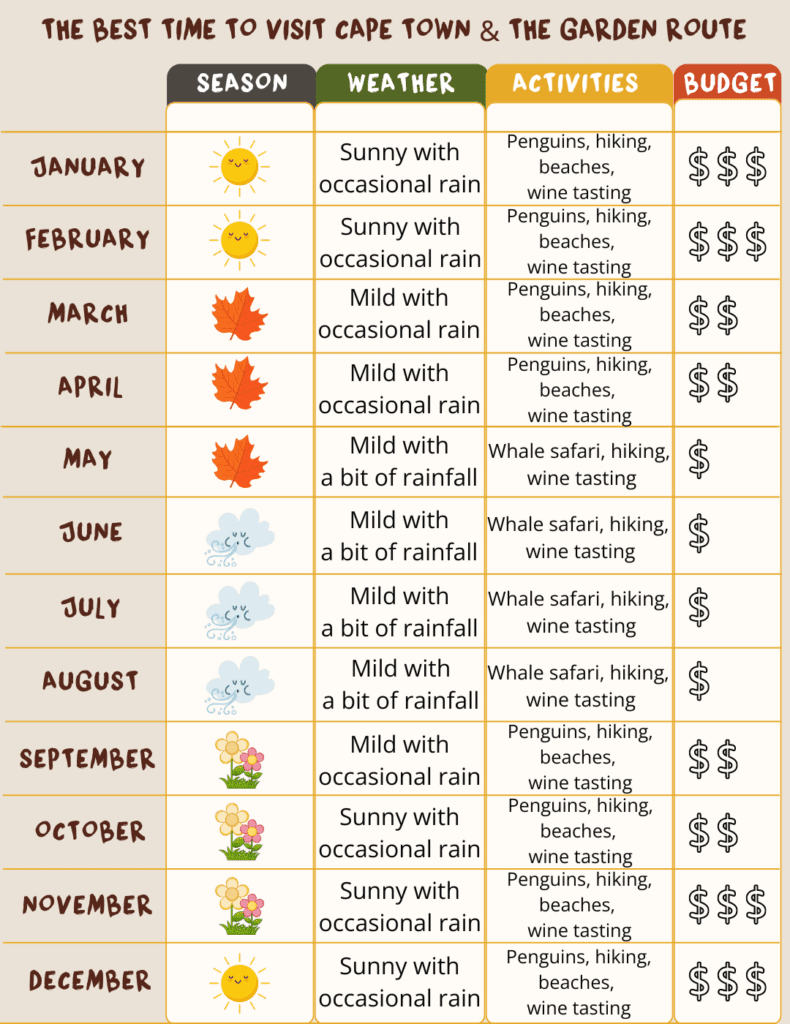 Check out our carefully curated infographic on when to best visit Cape Town and the Garden Route month-by-month here: